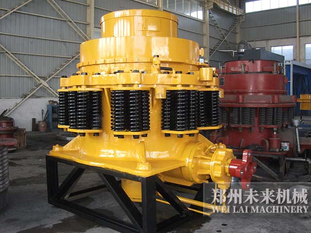 彈簧圓錐破碎機工作時,電機通過液力偶合器、小圓錐齒輪驅(qū)動偏心套底部的大圓錐齒輪,使偏心套旋轉(zhuǎn),致使錐體作旋擺動而破碎物料。破碎機的主軸是不動的,只是支撣球面瓦,承受破碎力。由于破碎機主軸不動而偏心套傳遞破碎力,故該結(jié)構(gòu)可承受較大破碎力,對細碎和超細破碎非常適應,因為超細破碎的破碎力是非常大的。預計其產(chǎn)品粒度(對于超細碎型襯板)開路時可達50-80%(視物料性質(zhì)而有所差異)